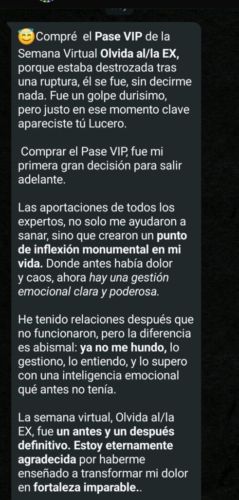 Tu tiempo vale oro. Deja de sufrir y de regalarle tu energía a quien ya se fue. Es un PASE VIP con las estrategias exactas para cerrar el ciclo YA y encontrar la paz que te mereces.